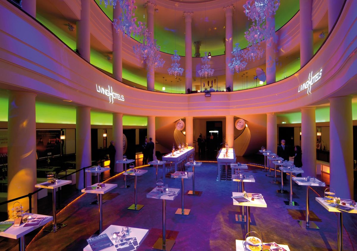 Mitten im Schöneberg, dem wohl buntesten Stadtteil Berlins! Das Foyer des METROPOLS empfängt Sie mit schlichter und doch erhabener Eleganz. Es wird dominiert von einer soliden, runden Bar, die auch als Empfangscounter genutzt werden kann. Besonders hier scheint der Architekt Hans Kollhoff den verbindenden Gedanken thematisiert zu haben.